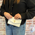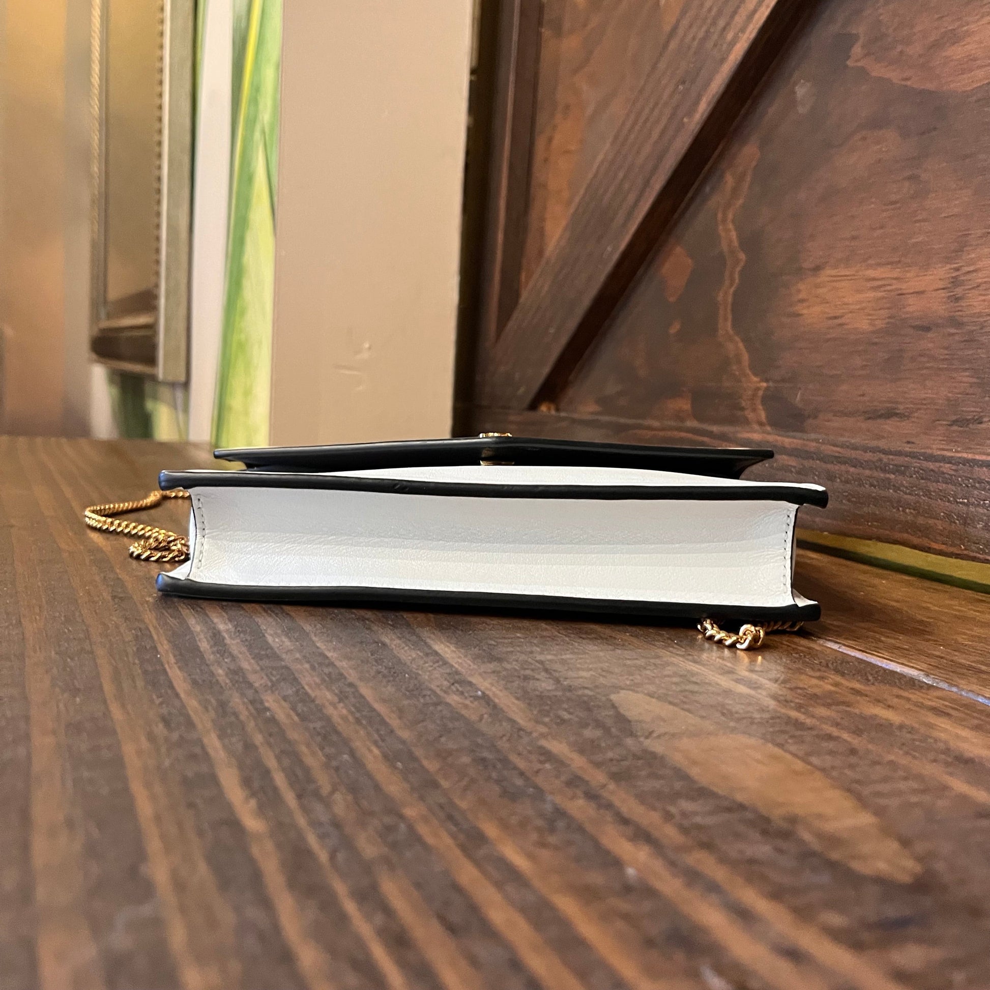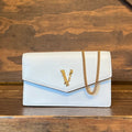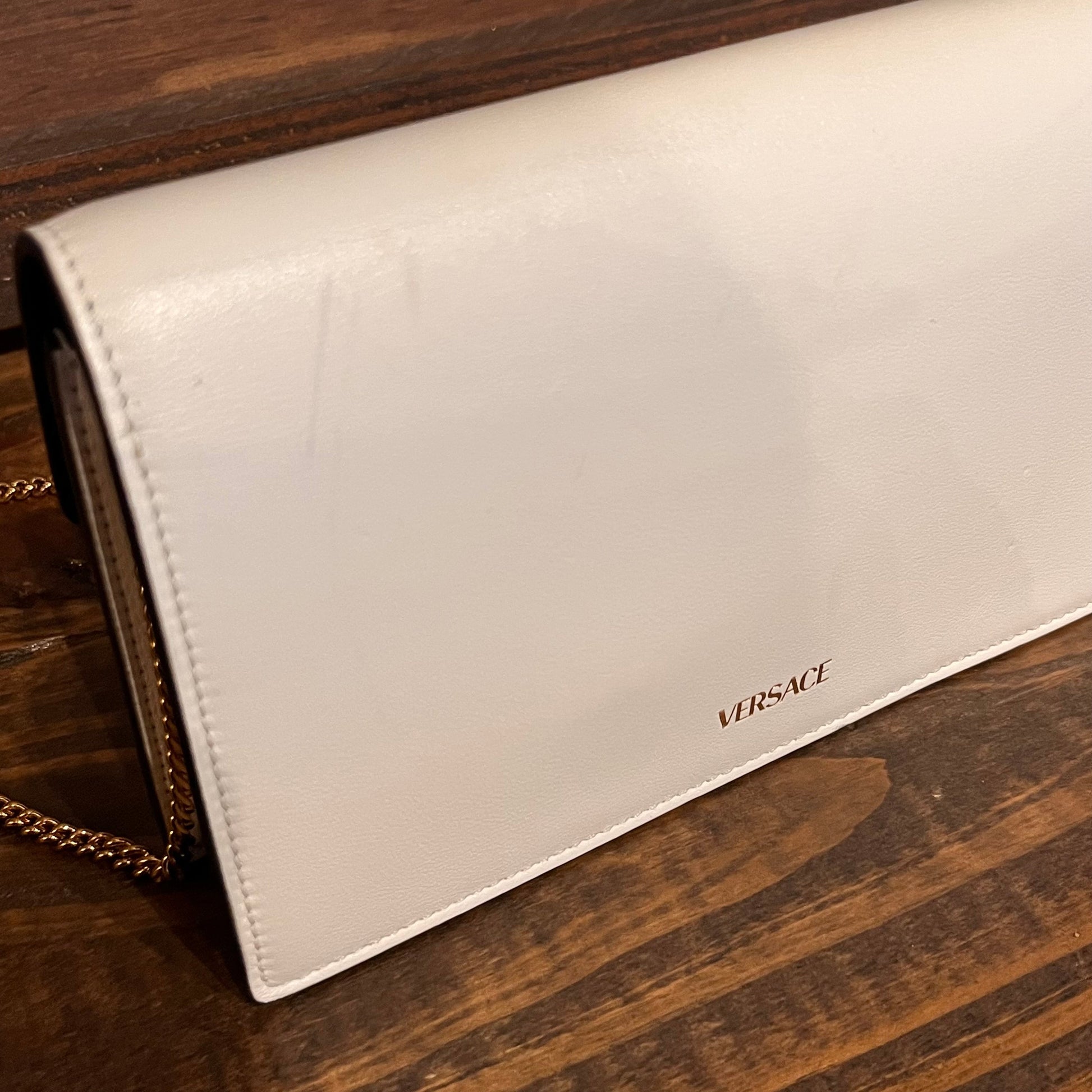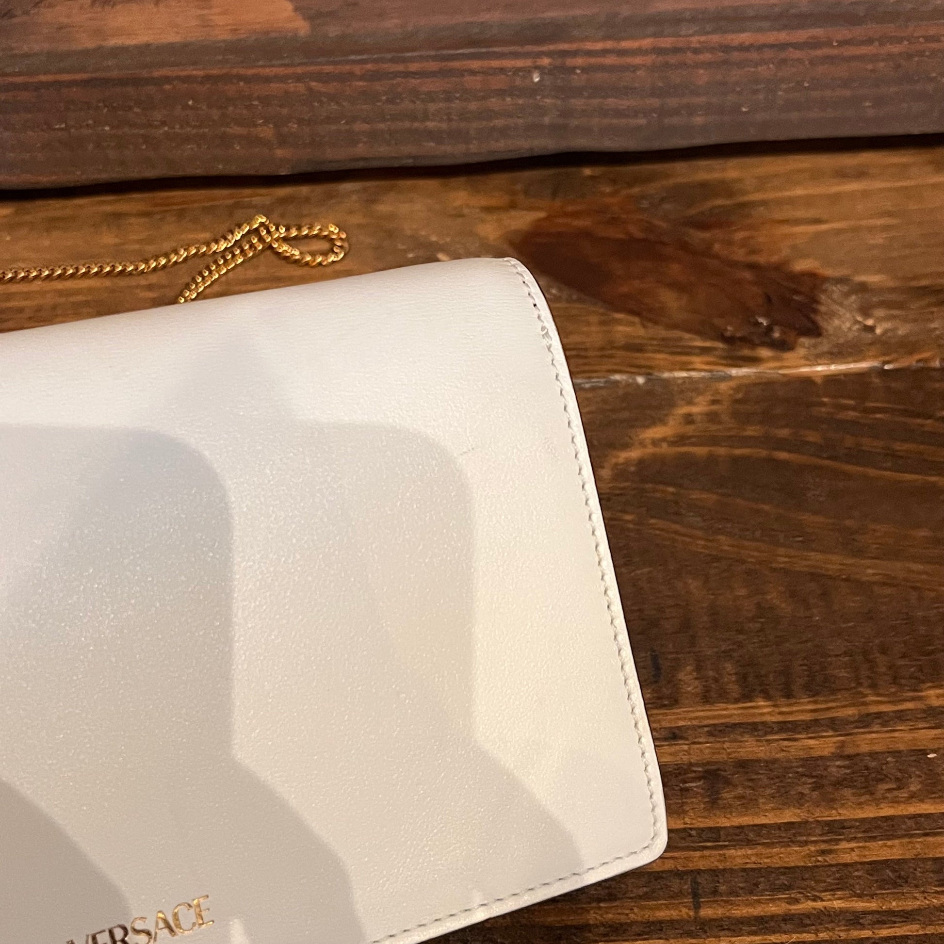 VERSACE Virtus Chain White Leather Shoulder Bag